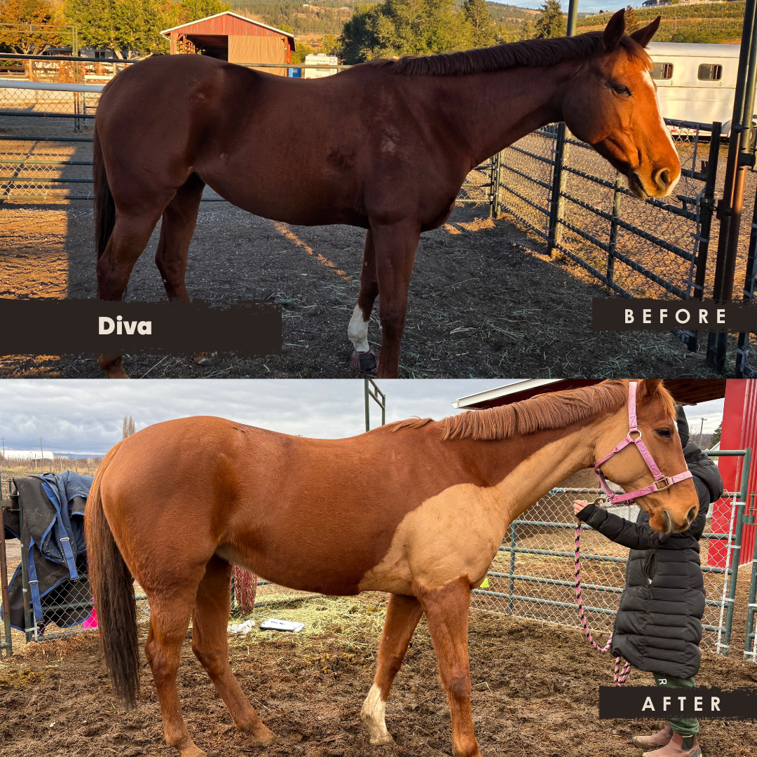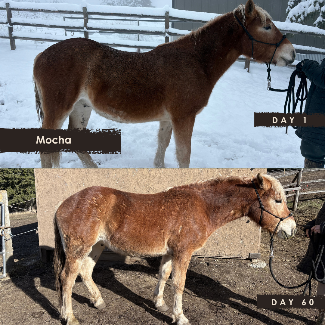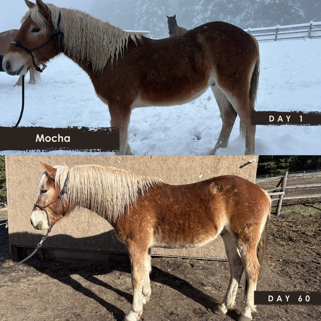 I was a bit lost trying to navigate a feeding program for my lactating mare. She was hanging onto a lot of weight after the birth and I wanted to see her look better, while still being able to properly nurse her foal in the later stages. I reached out to Makaila for help because I was feeling a bit like a mad scientist with all the powders and supplements and just not seeing a change in my horses.
